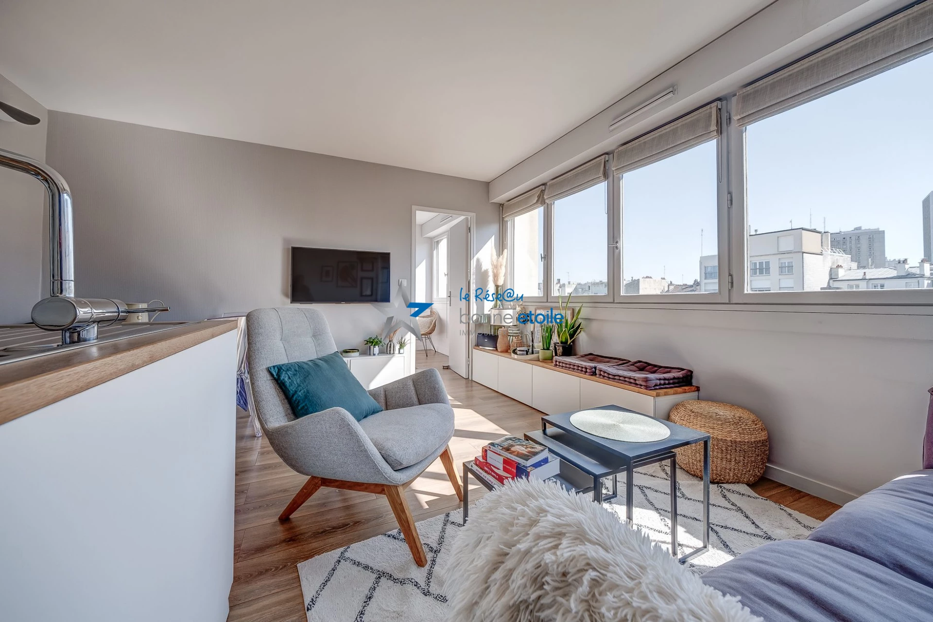 Sous compromis : A deux pas du Parc des Buttes Chaumont, des commerces du Plateau et de Jourdain, au sein d'une copropriété de standing, appartement deux pièces au calme, lumineux, largement éclairé par une série de fenêtres panoramiques offrant entrée, séjour et sa cuisine ouverte équipée, chambre claire avec dressing, salle d'eau, toilettes. Cave et emplacement de parking en sous-sol complètent le bien.