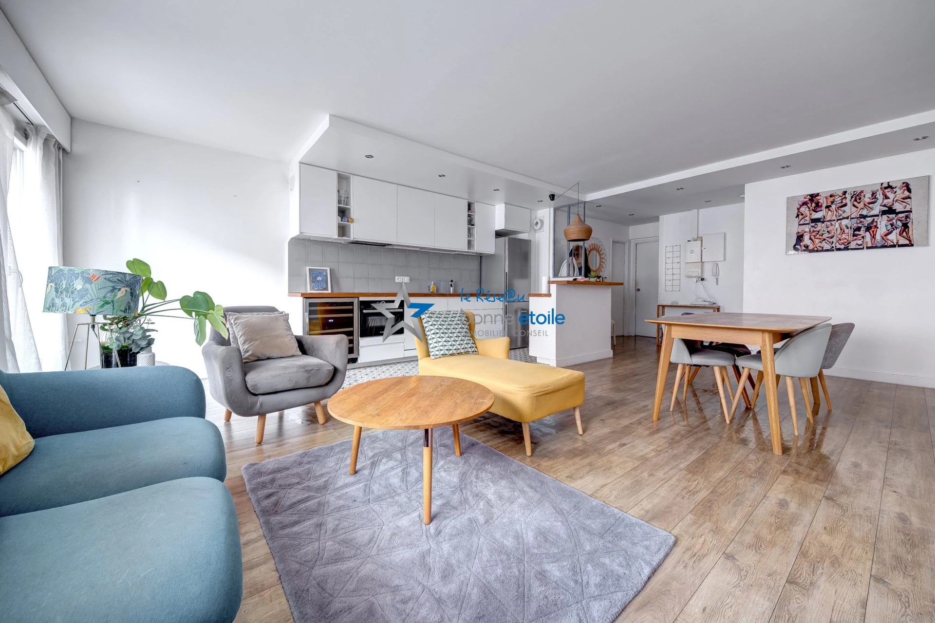 RUE DU PLATEAU. Idéalement situé à deux pas du parc des Buttes-Chaumont et du Village Jourdain, au sein d'une copropriété remarquablement tenue avec gardienne. Au 4ème étage avec ascenseur, appartement 4 pièces composé d'une entrée sur une grande pièce de vie avec cuisine ouverte équipée, une chambre, le tout ouvrant par de larges baies vitrées sur un balcon plein sud. Salle d'eau attenante. Deux chambres côté jardin avec leur salle de bain. Une cave et un parking complètent le bien. Le privilège d'un bien de qualité au plan parfait pour une famille. Dans une ambiance village, un environnement verdoyant, au sein d'une rue calme et à deux pas des commerces de qualité (Bar fleuri, Boulangerie Milligramme, Pâtisserie Ginko...). Un plan est disponible sur demande. La présente annonce immobilière a été rédigée sous la responsabilité éditoriale de Clémentine Capitaine - agent commercial - SIRET 49297307800016