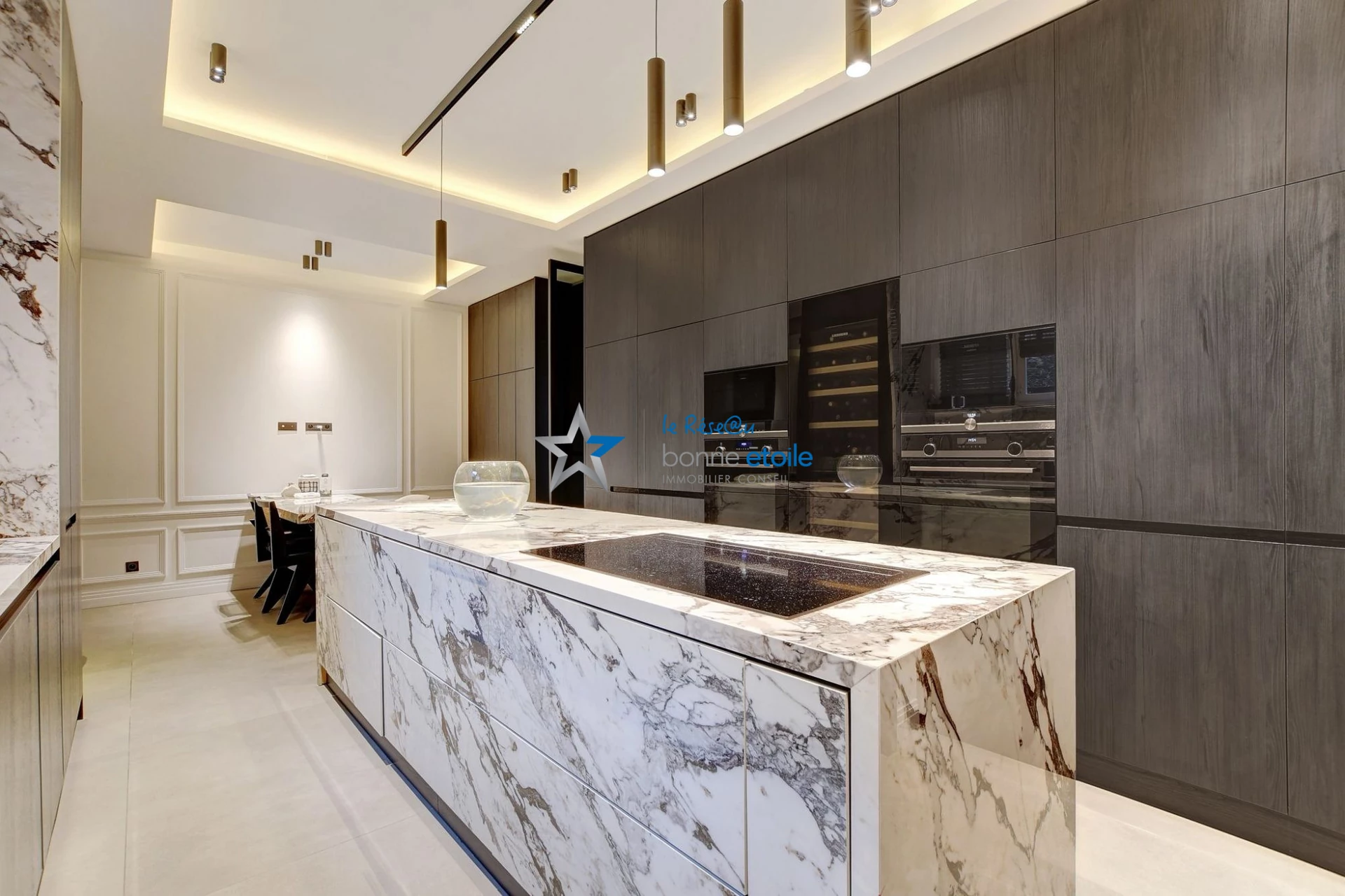 Les espaces de vie sont généreux et bien distincts : un salon élégant, une salle à manger séparée, ainsi qu'une grande cuisine équipée dinatoire avec espace repas convivial. Un bureau ou salle de jeux polyvalent complète l'ensemble, ainsi qu'une lingerie / buanderie indépendante.