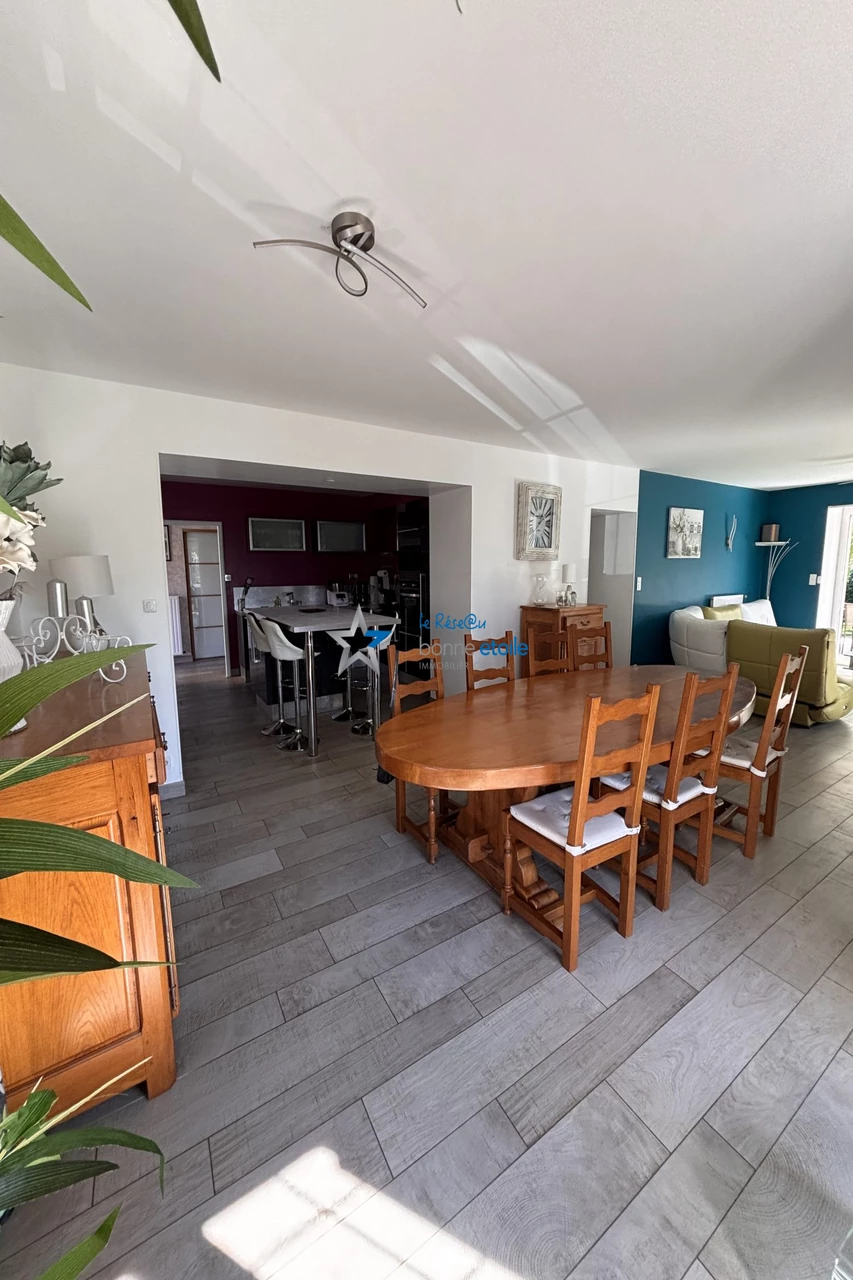 Dès l'entrée vous serez séduit au rez-de-chaussée par la vaste pièce de vie chaleureuse avec cuisine américaine équipée et aménagée suivi d'un séjour et salon avec sa cheminée, baigné de lumière naturelle grâce à ses grandes ouvertures en PVC à double vitrage, idéale pour les repas en famille ou les soirées entre amis. Une salle de bains, une buanderie et des toilettes séparés.
