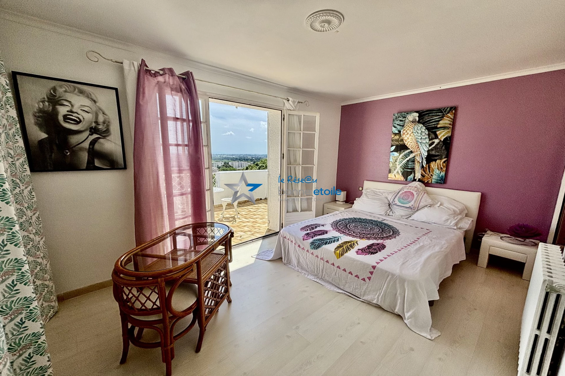 Deux grandes chambres dont une avec accès grenier qui peut être aménagé, et l'autre avec sa propre terrasse, qui surplombe toute la maison avec une magnifique vue mer et