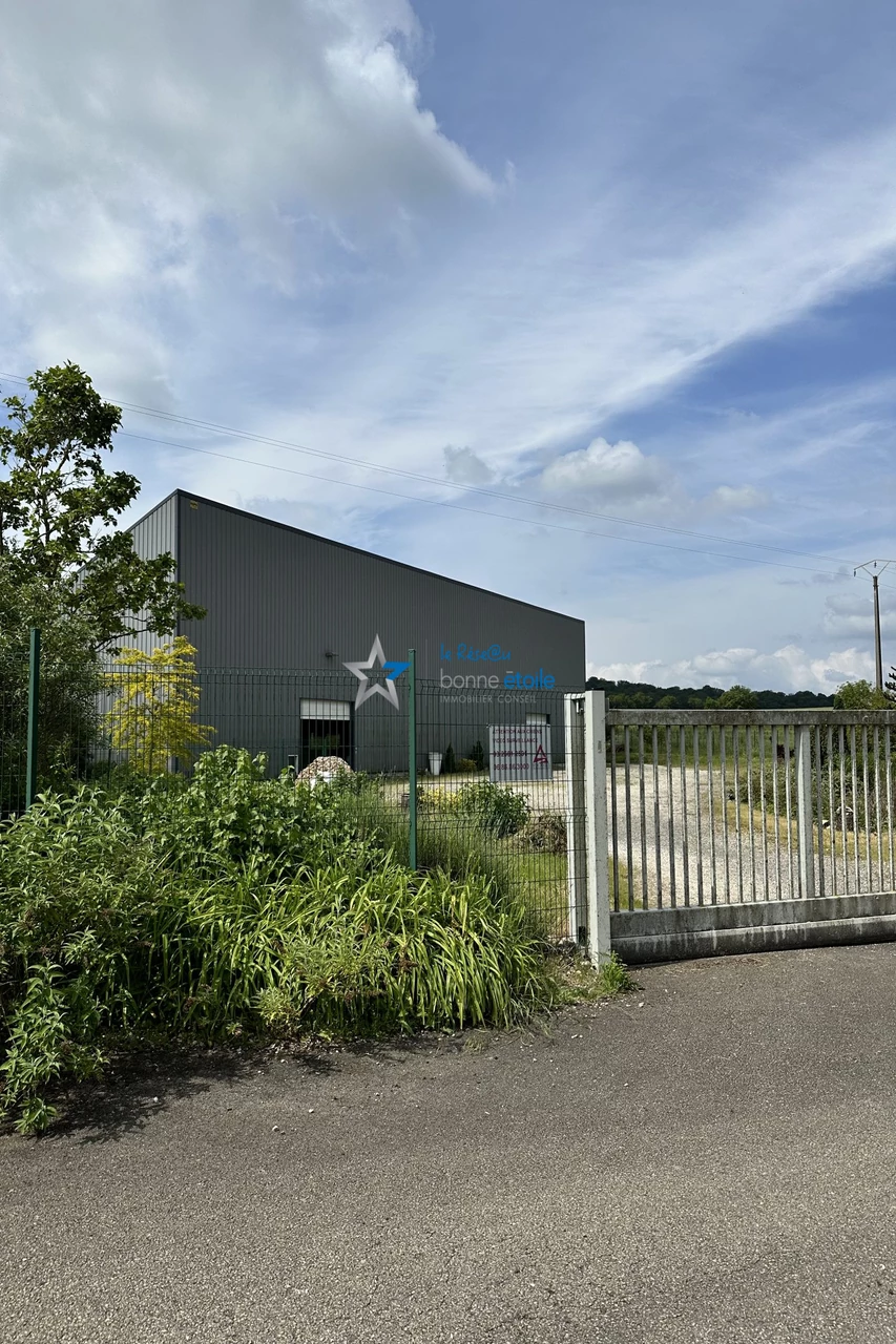 Le bâtiment s'étend sur un terrain de 4 418 m² entièrement clos. À l'avant, il est équipé de deux portes sectionnelles isolées de grande hauteur et d'un portail électrique de grande largeur. La cour facilite l'accès et le stationnement pour les poids lourds. À l'arrière, une deuxième entrée est également disponible, avec un espace de stationnement.